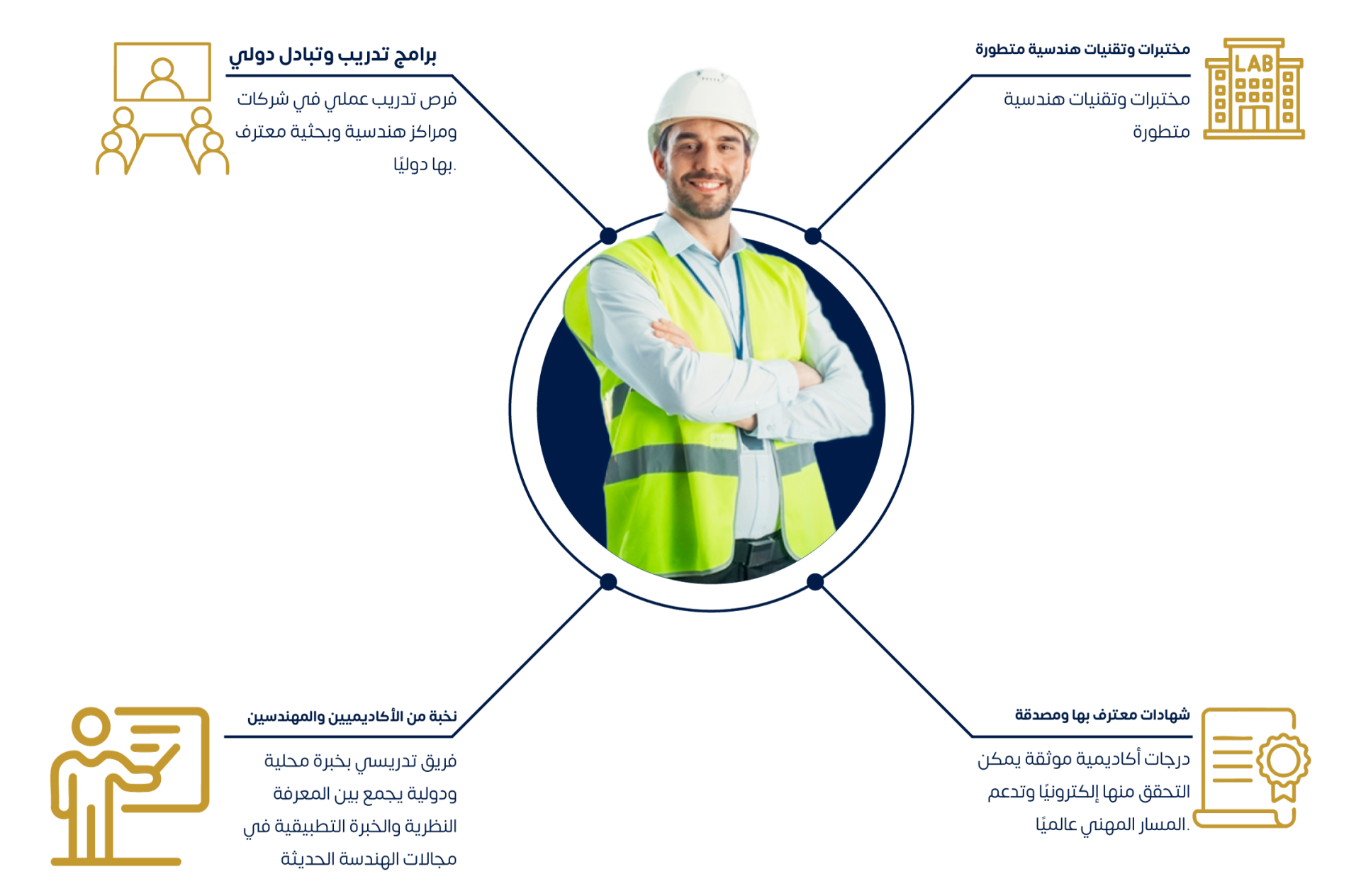 الجودة الأكاديمية: التزام بأعلى معايير التعليم الهندسي والبحث العلمي التطبيقي.